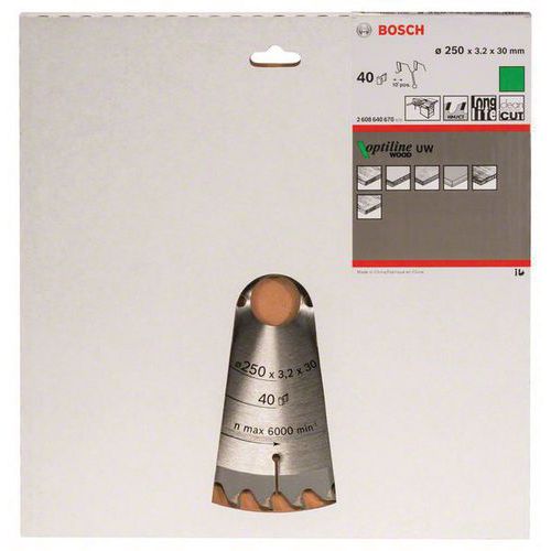 Optiline Wood pour scies circulaires de table, Alésage Ø: 30 mm, Ø: 25 cm, Nb de dents: 40