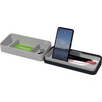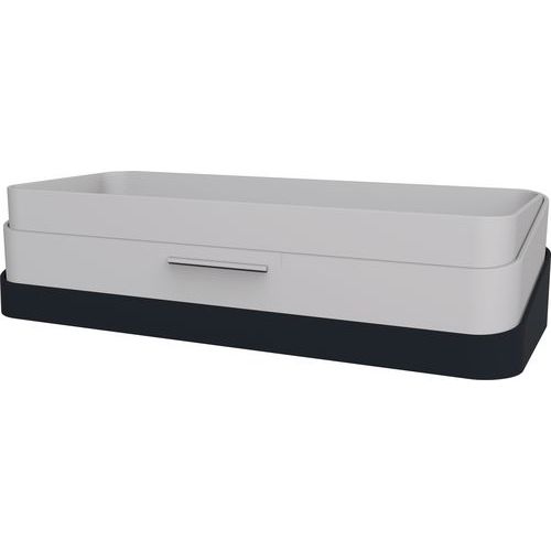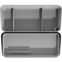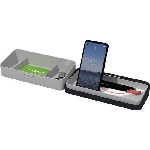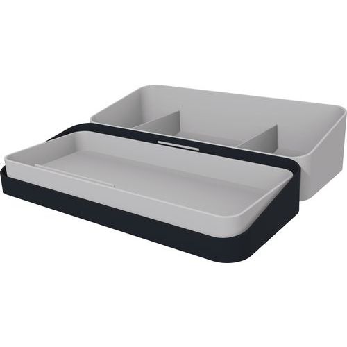 La partie inférieure avec porte-stylo et trois compartiments de différentes tailles convient par exemple pour les notes adhésives et les petits objets.