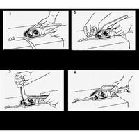 Cisaille courbe de conception ergonomique. Glisse facilement sous tout feuillard solidement serré. Aucun retour : coupe en retenant les 2 extrémités du feuillard.