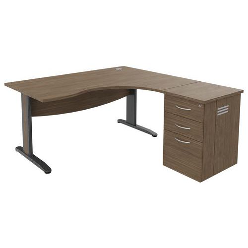 Pack bureau asymétrique Quatuor pied L métal retour à droite avec caisson hauteur bureau offrant un grand espace de travail Plateau panneau de particules épaisseur 25 mm, chants plaqués. Caisson 3 tiroirs dont 1 pour dossiers suspendus, avec serrure centralisée. Pieds métal forme L avec passage de câbles sous baguettes bois amovibles. Pack bureau asymétrique Quatuor pied L métal retour à droite avec caisson hauteur bureau offrant un grand espace de travail Plateau panneau de particules épaisseur 25 mm, chants plaqués. Caisson 3 tiroirs dont 1 pour dossiers suspendus, avec serrure centralisée. Pieds métal forme L avec passage de câbles sous baguettes bois amovibles.
