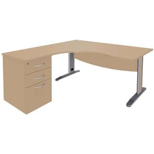 Pack bureau asymétrique Quatuor-Retour gauche-Caisson HB-Manutan Expert, Type de piétement: En L