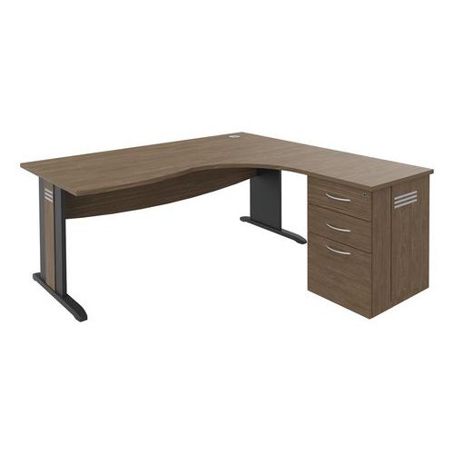 Pack bureau asymétrique Quatuor pied L retour droite + caisson Manutan Expert