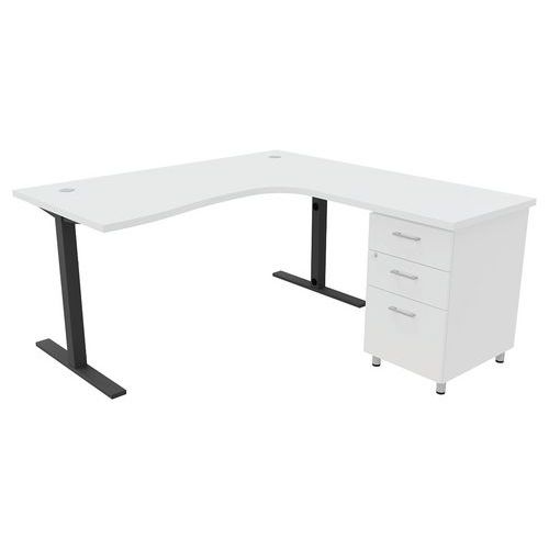 - Pack IDEA composé d'un bureau asymétrique avec poutre porteuse métallique sous plateau pour plus de solidité et d'un caisson hauteur bureau
