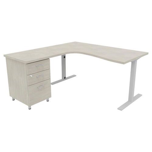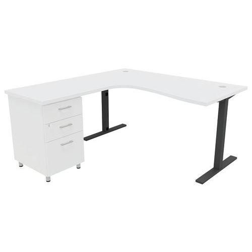 - Pack IDEA composé d'un bureau asymétrique avec poutre porteuse métallique sous plateau pour plus de solidité et d'un caisson hauteur bureau