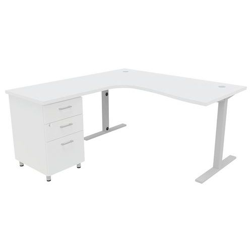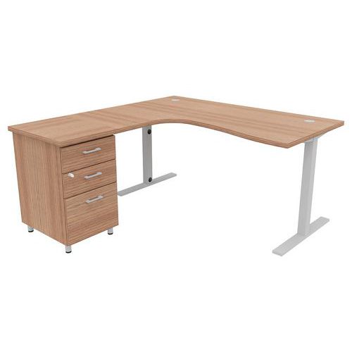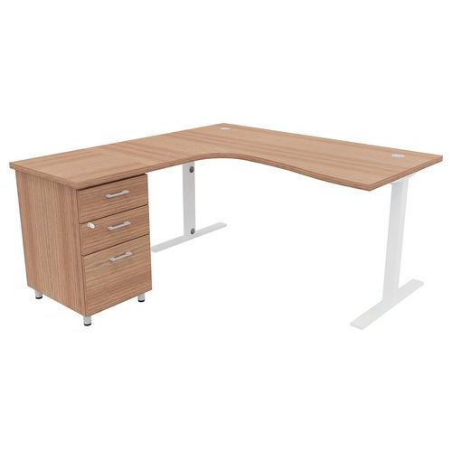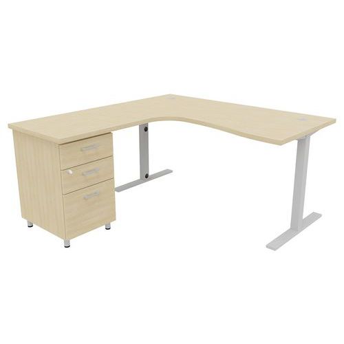 - Pack IDEA composé d'un bureau asymétrique avec poutre porteuse métallique sous plateau pour plus de solidité et d'un caisson hauteur bureau