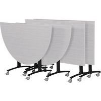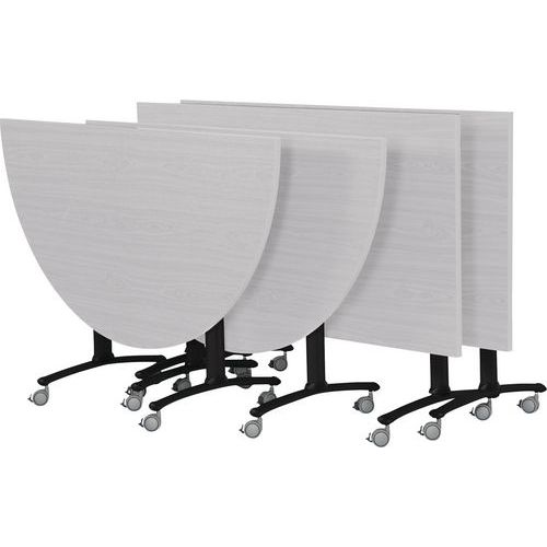 Pack de réunion Axe composé de 2 tables rectangulaires 160x68 cm + 2 tables 1/2 rondes 136x68 cm avec plateau pivotant permettant un gain de place pour le rangement.