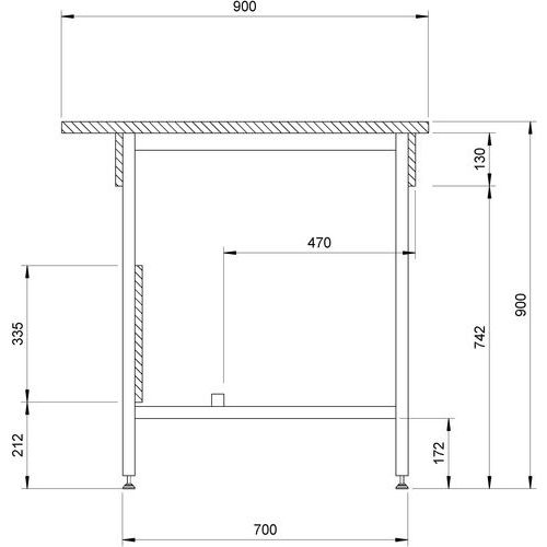 - Piètement équipé de pieds vérins de réglage en polyamide renforcé.