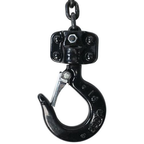 Palan à chaîne compact et robuste. Freinage exceptionnel. Levage aisé et en toute sécurité. Crochets pivotants en acier allié estampé peints noirs et équipés de linguets de sécurité forgés. Chaînes de charge en Grade 80 t galvanisées.