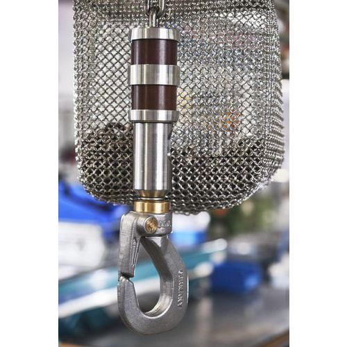 - Palan pneumatique JDN Food Grade fixe à crochet acier inox avec 5 mètres de levée sur 1 brin de chaîne en acier inox.