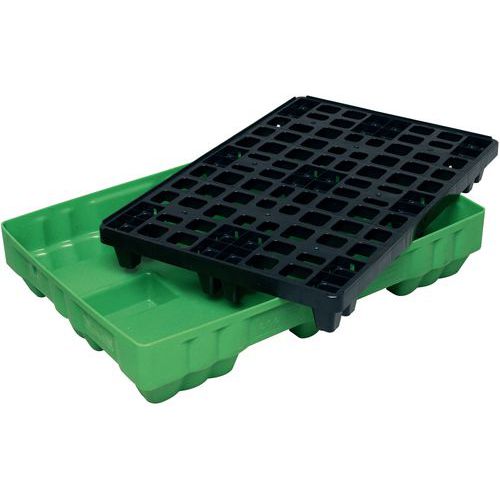 | Intitulé du produit | Palette de rétention, Capacité de rétention: 150 L, Coloris: Vert, Capacité (nb de fûts): 1 |