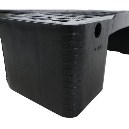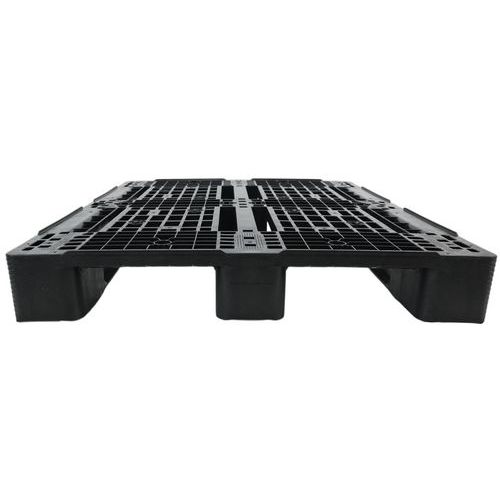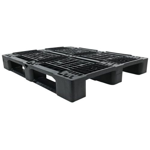 Palette plastique durable moulée en 1 seule pièce en PEhD recyclé. Palette non poreuse, pas de rétention de liquides. Nettoyage soigné et sûr avec structure ouverte. Palette entreposable sur rack à palette classique.