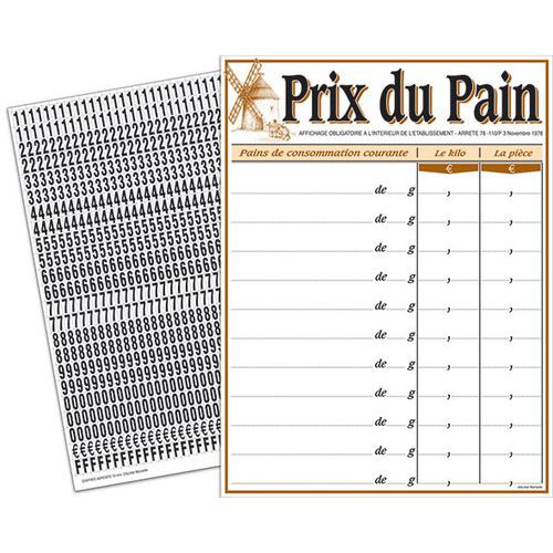 | Intitulé du produit | Pancarte prix du pain_Matfer, Type: Pancarte, Hauteur: 40 cm, Emballage recyclable: Oui - 100 % |