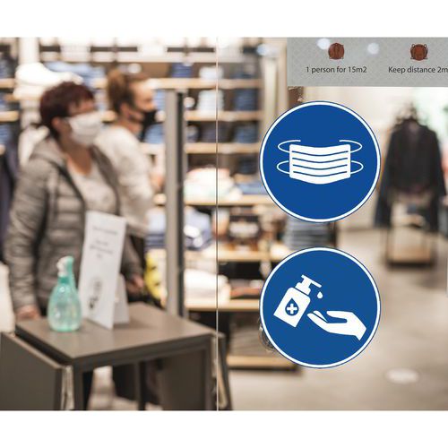 | Intitulé du produit | Panneau adhésif gel main obligatoire 20cm bleu, Adhésif: oui, Rigide: oui, Norme ISO 7010: oui, Matériau: PVC |