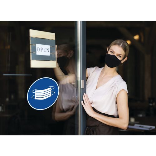 | Intitulé du produit | Panneau adhésif masque obligatoire 20cm bleu, Adhésif: oui, Rigide: oui, Norme ISO 7010: oui, Matériau: PVC |