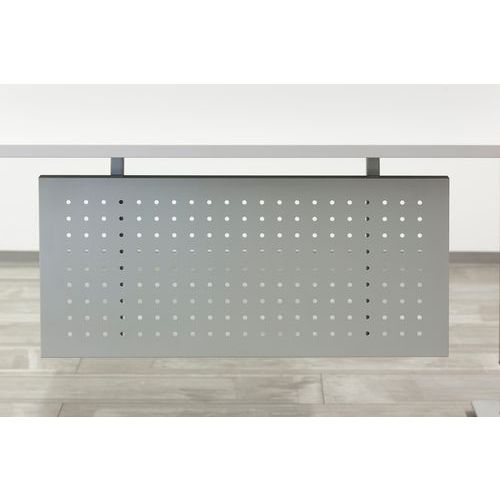 Panneau brise-vue sous bureau argenté. Panneau de visibilité. Tôle perforée émaillée au four. Montage : À monter Service installation/montage : Option montage Classement au feu : M0