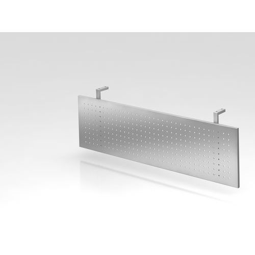 Panneau brise-vue sous bureau argenté. Panneau de visibilité. Tôle perforée émaillée au four. Classement au feu : M0 Service installation/montage : Option montage Montage : À monter