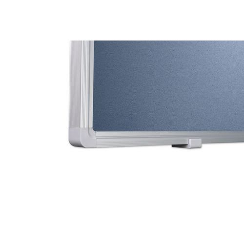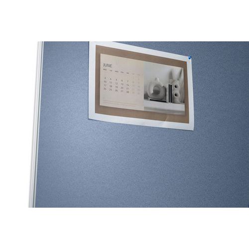 Tableau d'affichage textile punaisable. Surface haute qualité 100 % recyclée. Large éventail de coloris pour le fond. Matériau aluminium anodisé de qualité. Pourtour avec profils et coins plastique. Entretien aisé. Résiste au feu.