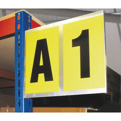 Panneau d'identification - Auto-adhésif ou Magnétique - Manutan Expert Panneau d'identification idéal pour marquer clairement les salles de stockage, les zones ou les rangées de rayonnages. S'utilise en combinaison avec des chiffres et lettres autocollants de L 14 x H 23 mm. Fabriqué au RU Secteur entrepôt Montage sans outils