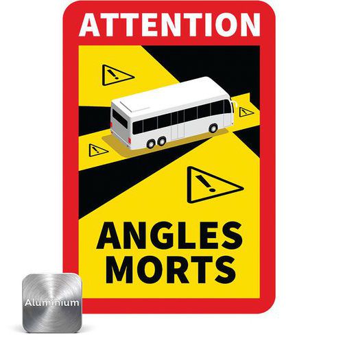Panneau danger angles morts pour Bus, Adhésif: non, Rigide: oui, Panneau forme: Rectangle, Message: Attention