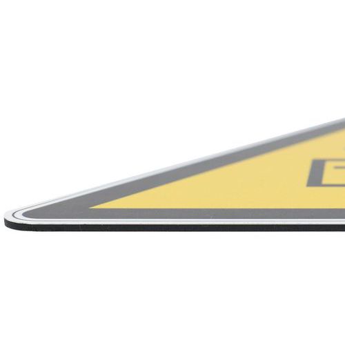 | Intitulé du produit | Panneau, Adhésif: non, Rigide: oui, Norme ISO 7010: oui, Panneau forme: Triangle, Type de panneau: Danger |