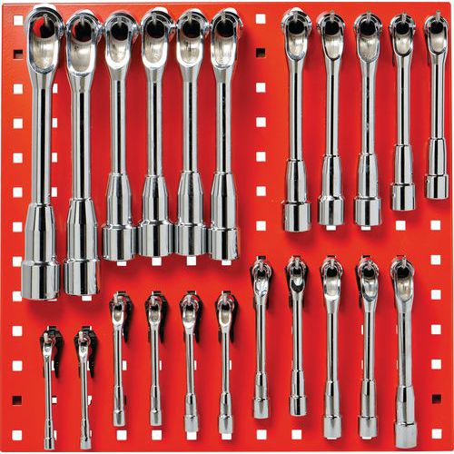 | Intitulé du produit | Panneau de 22 clés à pipe débouchées chromées 6/6 pans en mm, Nb de clés: 22, Réf. Fabricant: 94-SDJ22P |