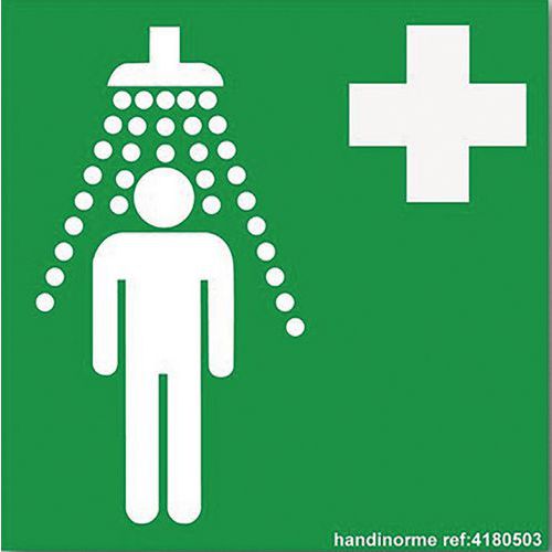 Ce pictogramme Douche de sécurité, peut être utilisé dans tous les lieux publics tels que les hôtels, les salles de spectacles, les centres commerciaux pour les premiers secours.