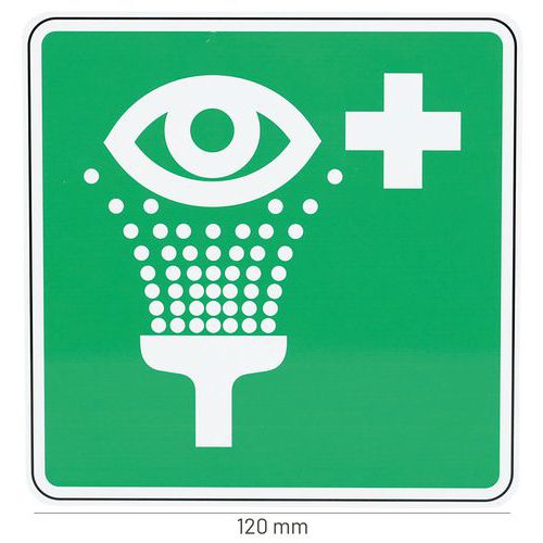 Panneau Equipement de rinçage des yeux, Adhésif: non, Rigide: oui, Panneau forme: Carré