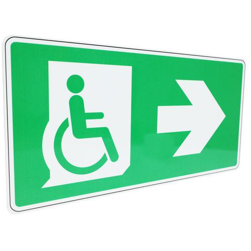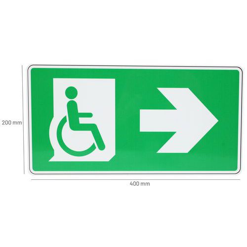 | Intitulé du produit | Panneau Sortie handicapés flèche droite aluminium, Adhésif: non, Rigide: oui, Norme ISO 7010: oui |