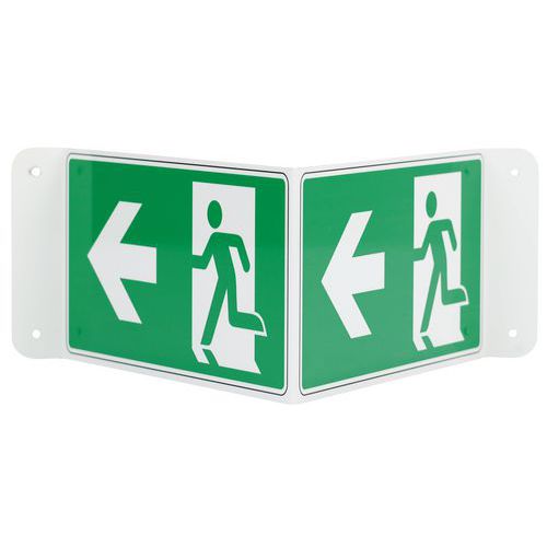 Panneau V Sortie de secours flèche gauche aluminium - Manutan Expert