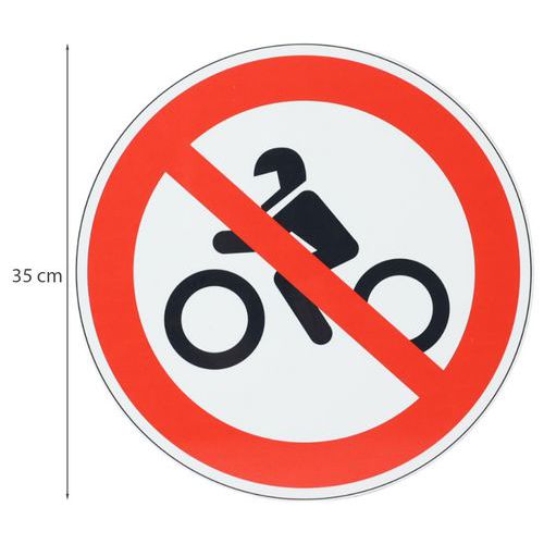 | Intitulé du produit | Panneau Accès interdit aux motos aluminium 350 mm, Adhésif: non, Rigide: oui, Norme ISO 7010: non |
