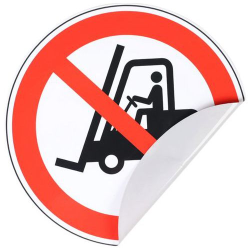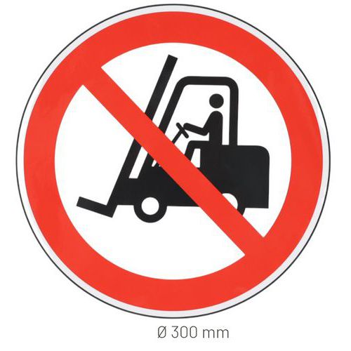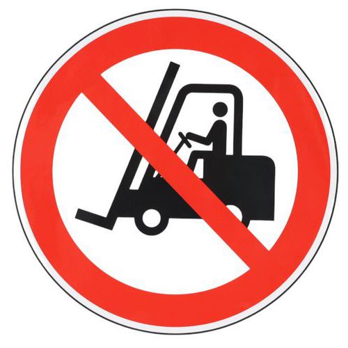 Organisez les zones piétonnes et d'engins de manutention à l'aide de ce panneau d'interdiction de circulation avec pictogramme des chariots élévateurs à fourches.