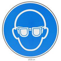 Panneau Lunettes de protection obligatoires, Adhésif: non, Rigide: oui, Norme ISO 7010: oui, Matériau: PVC