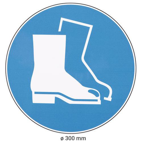 Panneau chaussures de sécurité obligatoires, Adhésif: oui, Rigide: non, Norme ISO 7010: oui Panneau chaussures de sécurité obligatoires, Adhésif: oui, Rigide: non, Norme ISO 7010: oui