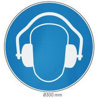 Panneau obligation-Protection auditive, Adhésif: non, Rigide: oui, Norme ISO 7010: oui, Panneau forme: Rond