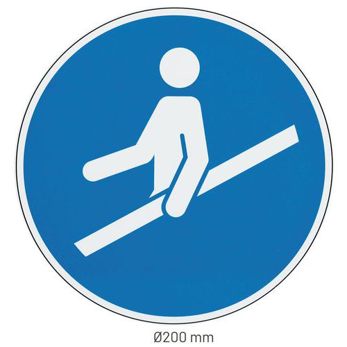 | Intitulé du produit | Panneau obligation Utiliser la main courante, Adhésif: non, Rigide: oui, Norme ISO 7010: oui, Matériau: PVC |
