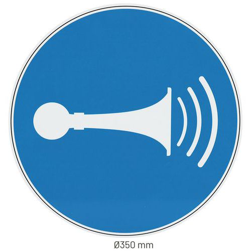 | Intitulé du produit | Panneau Utiliser le klaxon, Adhésif: non, Rigide: oui, Norme ISO 7010: oui, Panneau forme: Rond |