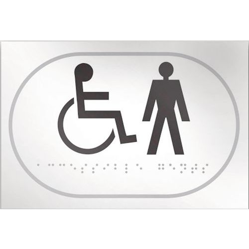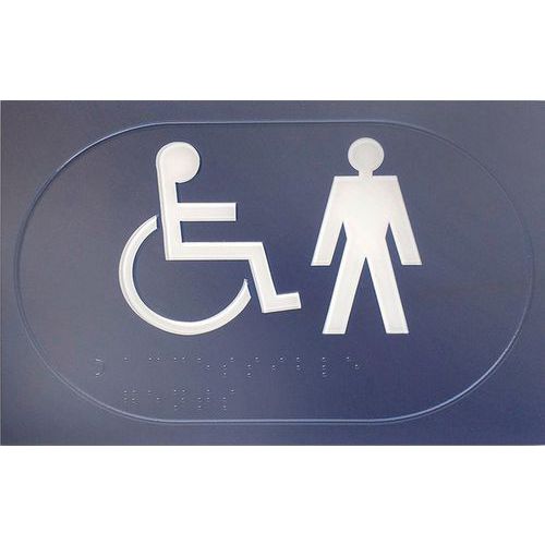 | Intitulé du produit | Panneau picto handicapé + homme en relief et en braille, Adhésif: oui, Matériau: PVC |