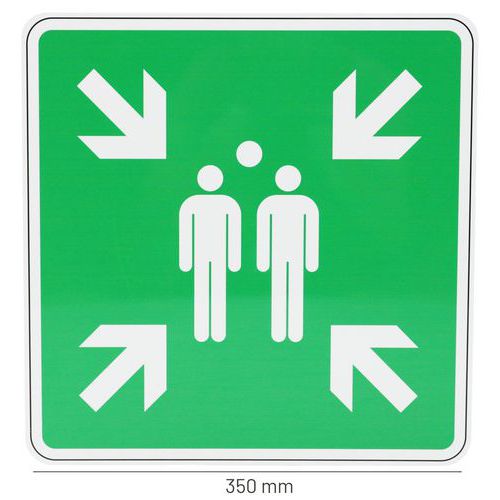 Panneau Point rassemblement après évacuation, Adhésif: non, Rigide: oui, Panneau forme: Carré