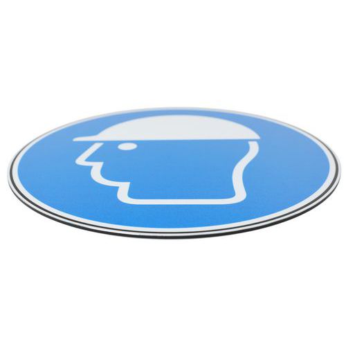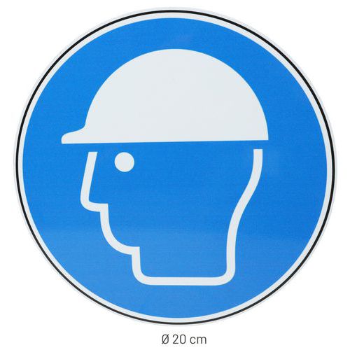 | Intitulé du produit | Panneau Casque de protection obligatoire, Adhésif: non, Rigide: oui, Norme ISO 7010: oui, Panneau forme: Rond |