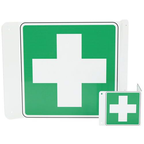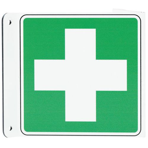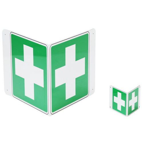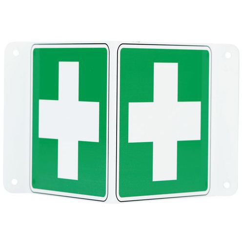 Panneau premiers secours double face V en aluminium - Manutan Expert