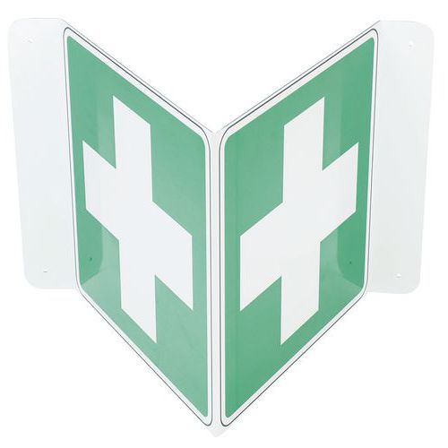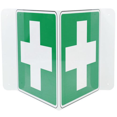 Panneau premiers secours double face V en aluminium - Manutan Expert