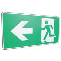 Intitulé du produit | Panneau Sortie secours flèche à gauche, Adhésif: non, Rigide: oui, Panneau forme: Carré |