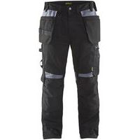 Détails: Braguette plastique Deux boucles de ceinture sur les côtés avec un bouton pour la boucle marteau, une boucle de ceinture avec anneau en D à l'avant Courbe de ceinture large à l'arrière Boutons métalliques Triple couture à l'entrejambe Poche détachable pour badge identifiant Poches: Poches arrières renforcées à soufflet Poche jambe avec soufflet, poche pour stylo, poche pour téléphone portable, deux grandes poches avec fermeture glissière et une pochette à carte amovible Poche cavalière Poches genouillères Poches flottantes avec porte-outils, elles peuvent être insérées dans les poches avant Poche mètre renforcée avec poche stylo Renforcement: Poches arrière renforcées CORDURA® Poches genouillères stretch renforcées en Cordura®