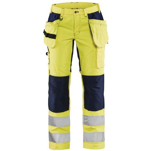 Pantalon haute visibilité stretch femme jaune fluorescent/marine