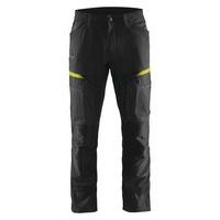 Pantalon services stretch noir/jaune fluorescent, poche A4 / tablette