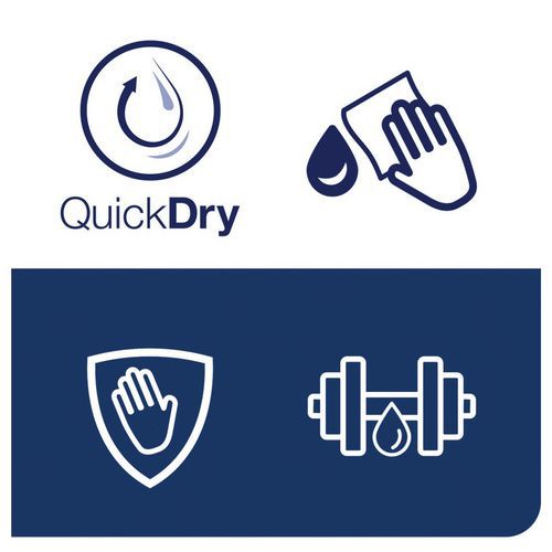 Papier doté d'un pouvoir d'absorption supérieur. Qualité QuickDry : plus résistant et absorbant qu'un papier ordinaire. Protection des mains de la chaleur et de la saleté. Très efficace pour essuyer l'huile. Ultra-résistant même mouillé. Boîte distributrice ergonomique, facile à transporter, à ouvir et à jeter.