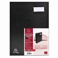 Couverture plastifiée, munie d'un porte-étiquette sur la face avant Intérieur en carte rigide 300 g/m2 Avec perforation en 3 points des compartiments Dos extensible à soufflets Encoches renforcées dans la partie intérieure des pages
