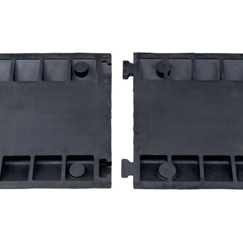 Passe-câble modulaire à canaux avec couvercle de protection. Assemblage simple et sûr des modules avec pattes à enclipser. Matériau caoutchouc plein noir avec couvercle PE robuste. Caoutchouc teinté dans la masse: résistance au froid et traffic intense. Goulotte profilée pour un glissement parfait des véhicules à leur passage. Charge maxi (t) : 24