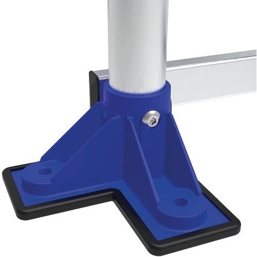 Passerelle aluminium fixe double entrée, petite hauteur d'accès. Confortable et sûre, évolutive, adaptable à tous types de besoin. Stable avec large plate-forme et marches profondes antidérapantes. Passerelle fixable au sol si besoin avec larges pieds à double fixation. Structure très résistante, adaptée aux usages intensifs, sols plats requis. Pied double fixation, vis Ø 8 mm (non fournies).