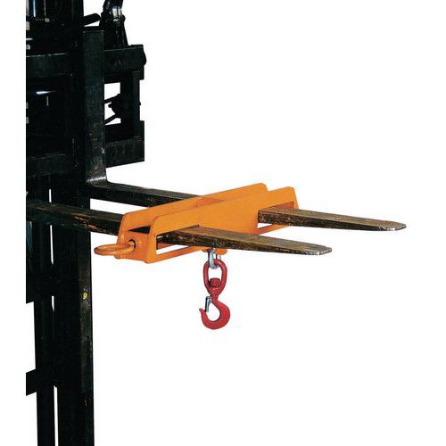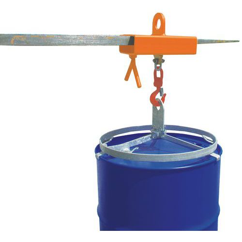 - Pour fixer à la fourche du chariot élévateur une pince à fût ou tout autre moyen permettant de transporter des fûts.